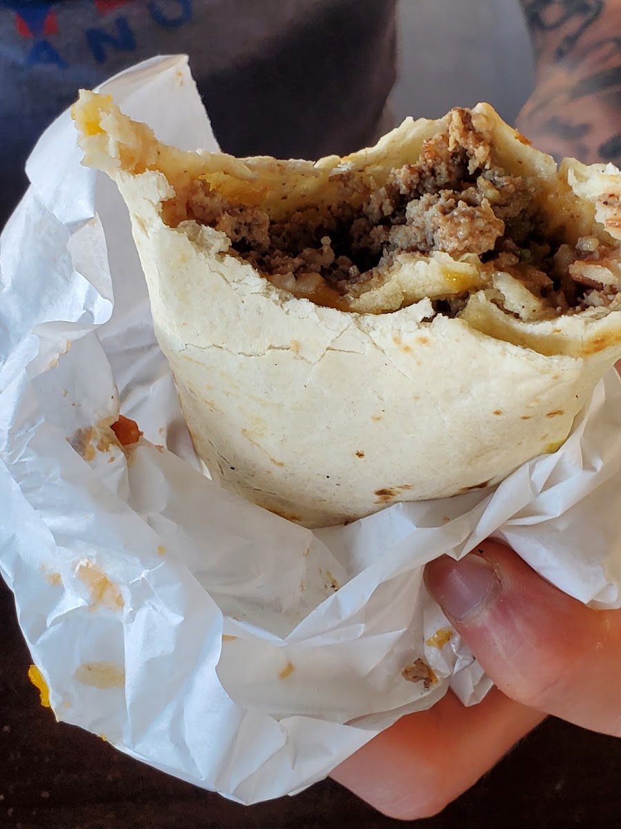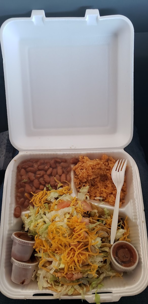 They come to your car or a table to take your order. Service was quick and friendly. Food was great, very tasty and big portions. Price was good, especially if you pay cash. He had chicken tacos...so tasty. I had a double teeny burger. It was huge. Can't imagine how big a regular burger would have been. Shake was big, delicious and very thick.
