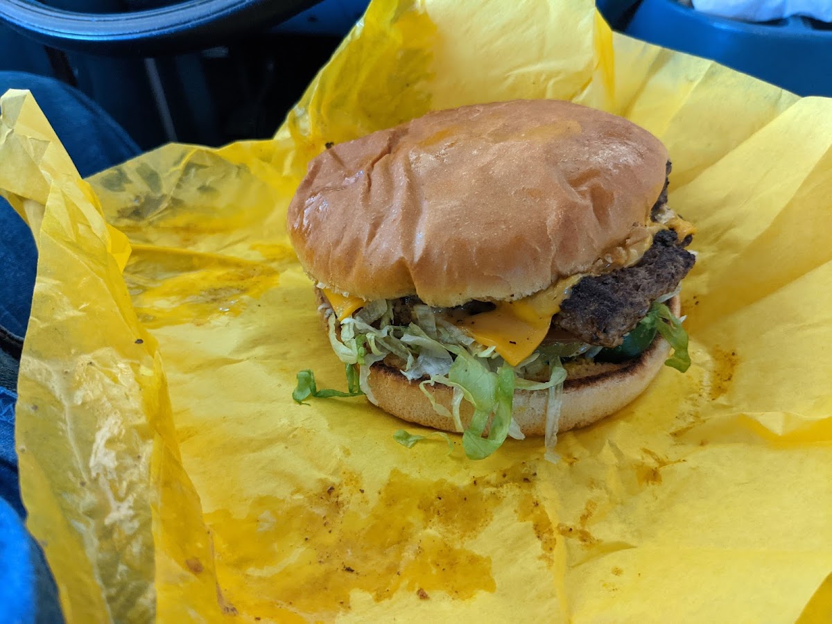 It’s an old school drive in w option to sit at the tables. The menu, clean cut to the point and with plenty options including non burger items. Cheeseburger was delicious we got the 2 cheeseburger deal, the chili dog w cheese and onions (20/10) and a lemonade. They also have this thing called a lemon squeeze which is practically shaved ice with fresh lemon juice and they give you a small container of salt. It is the craziest thing to me, but people are actually out here ordering this so I had to order it to find out for myself. I ate it and enjoyed it too. They take both cash and card, always a must in Alamogordo.